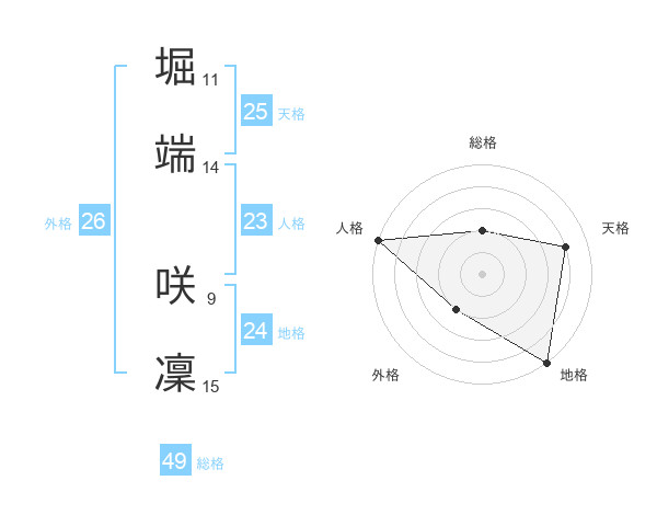 堀端 咲凜さんの外格は26画の2点!