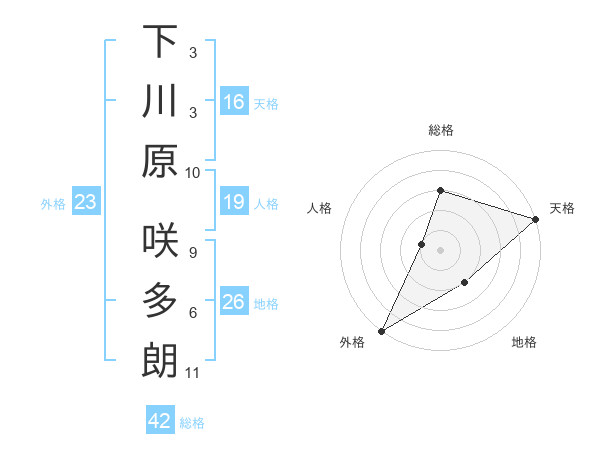 下川原 咲多朗さんを姓名の画数から五運を鑑定