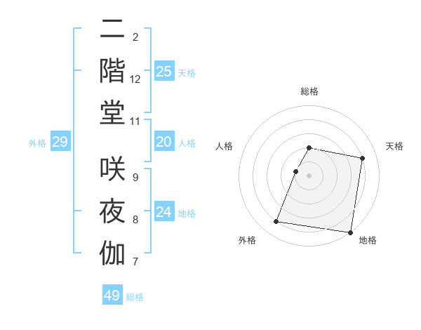 二階堂 咲夜伽さんを姓名の画数から五運を鑑定