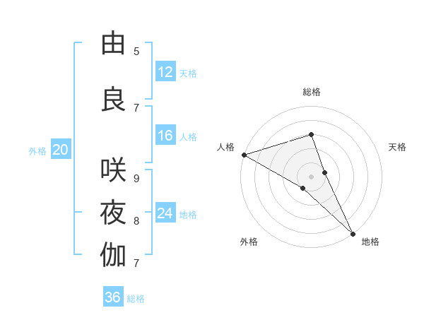 由良 咲夜伽さんの総格は36画の3点!