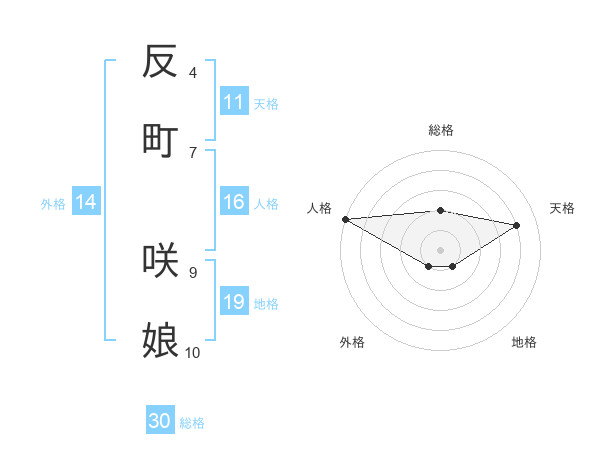 反町 咲娘さんを姓名の画数から五運を鑑定