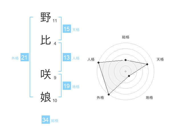 野比 咲娘さんの外格は21画の5点!