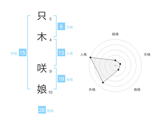 只木 咲娘さんの天格は9画の1点!