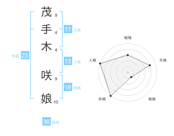 茂手木 咲娘さんを姓名の画数から五運を鑑定
