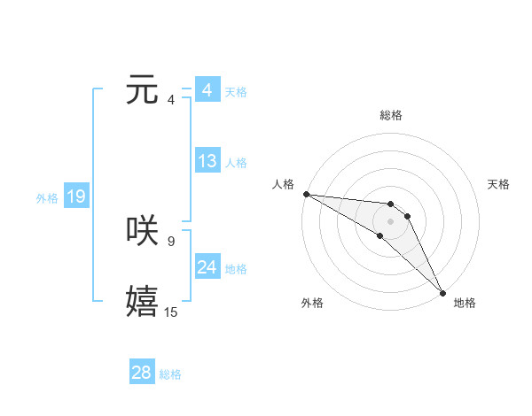 元 咲嬉さんの地格は24画の5点!