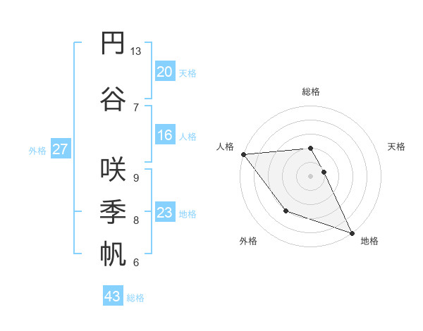 円谷 咲季帆さんを姓名の画数から五運を鑑定