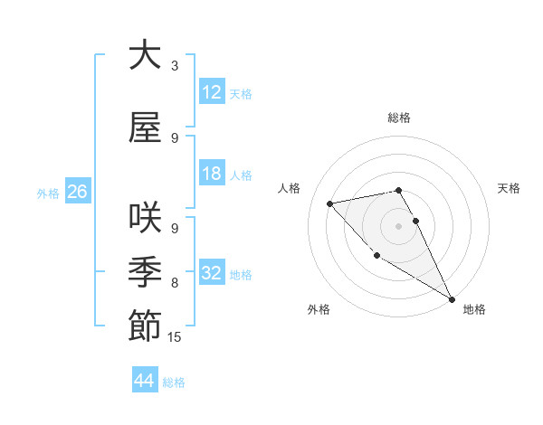 大屋 咲季節さんの総格は44画の2点!