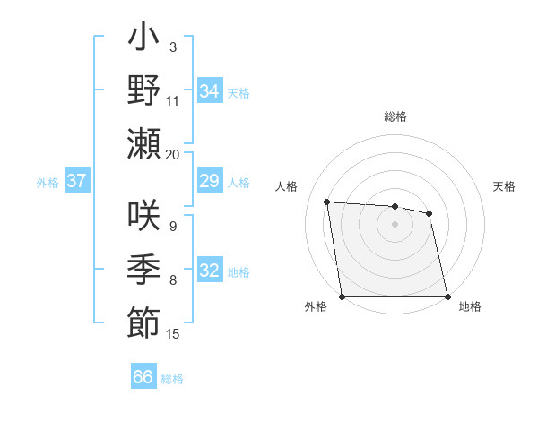 小野瀬 咲季節さんを姓名の画数から五運を鑑定