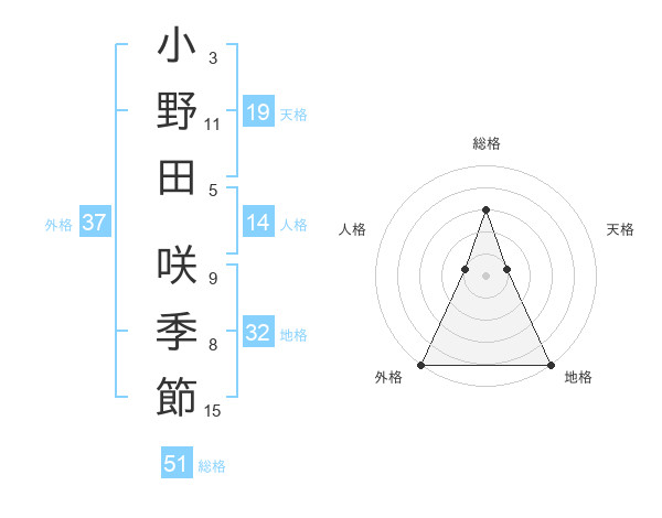 小野田 咲季節さんの総格は51画の3点