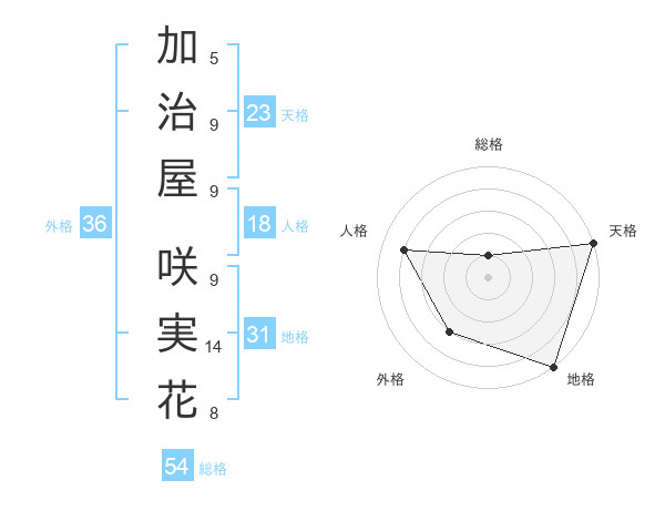 加治屋 咲実花さんの外格は36画の3点