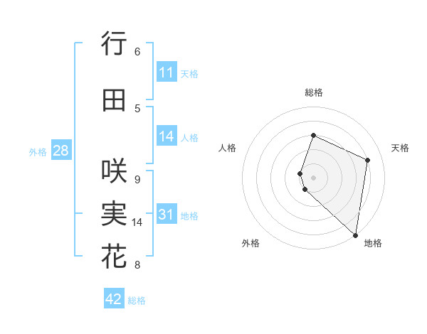 行田 咲実花さんを姓名の画数から五運を鑑定