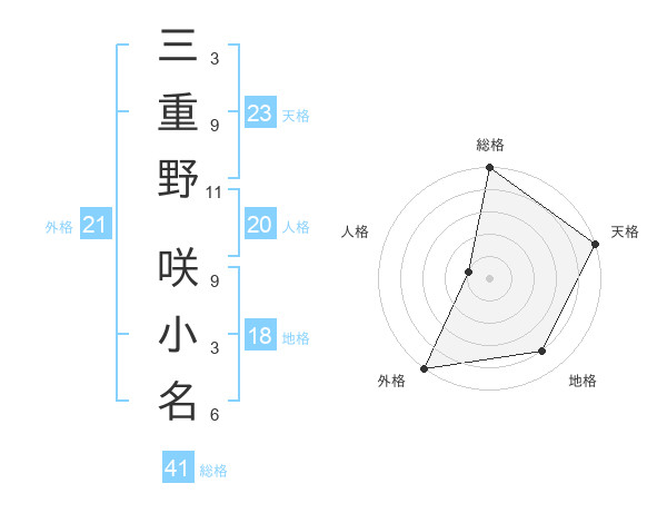 三重野 咲小名さんを姓名の画数から五運を鑑定