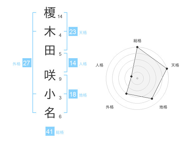 榎木田 咲小名さんの天格は23画の5点!