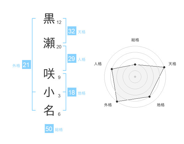 黒瀬 咲小名さんの総格は50画の2点!