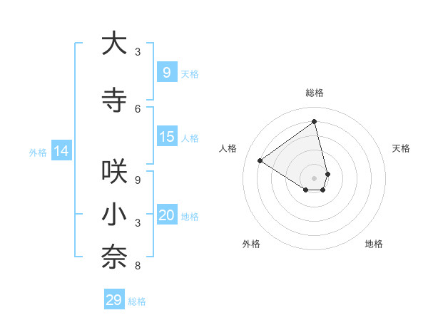 大寺 咲小奈さんを姓名の画数から五運を鑑定
