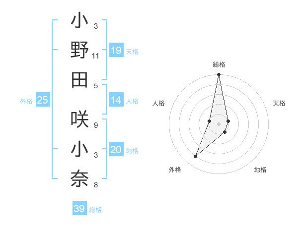 小野田 咲小奈さんを姓名の画数から五運を鑑定