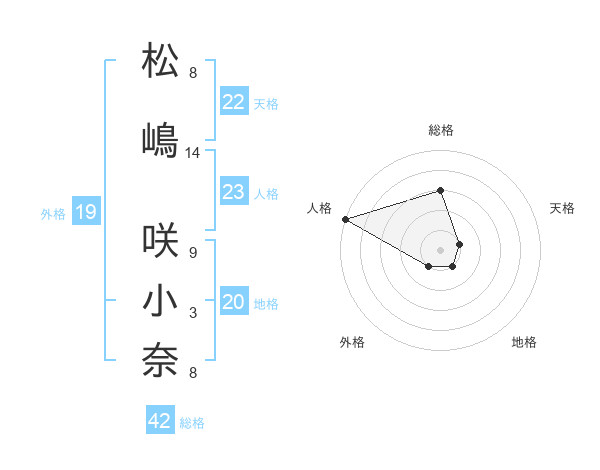 松嶋 咲小奈さんの総格は42画の3点!