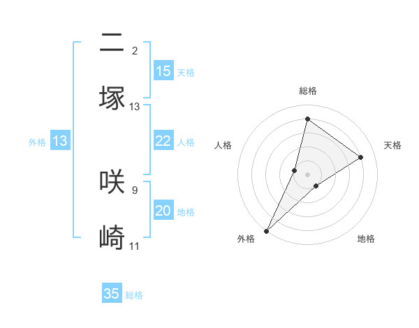 二塚 咲崎さんを姓名の画数から五運を鑑定