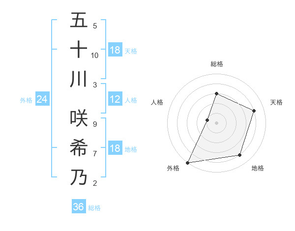 五十川 咲希乃さんの天格は18画の4点!
