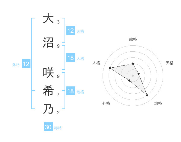 大沼 咲希乃さんを姓名の画数から五運を鑑定