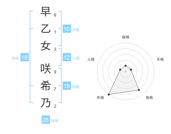 早乙女 咲希乃さんを姓名の画数から五運を鑑定