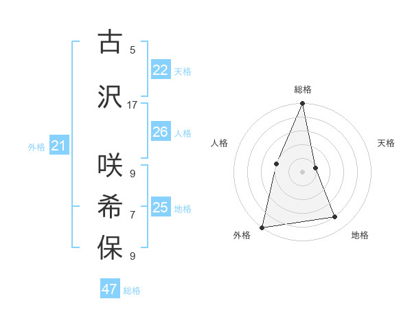 古沢 咲希保さんを姓名の画数から五運を鑑定