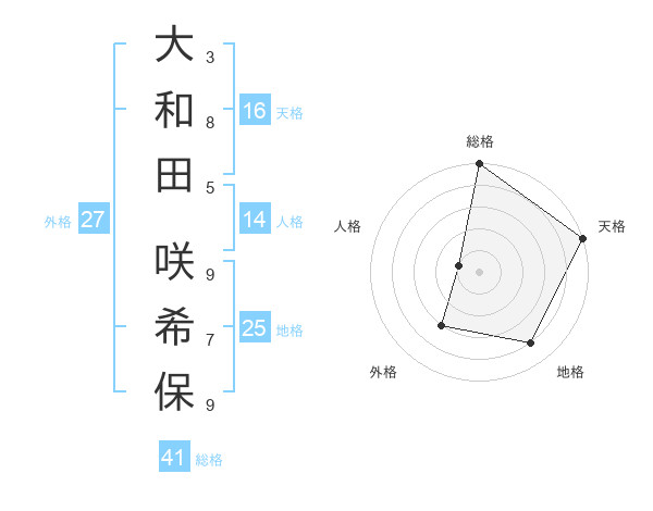 大和田 咲希保さんの天格は16画の5点!
