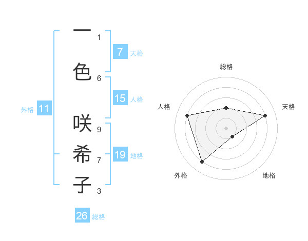 一色 咲希子さんを姓名の画数から五運を鑑定