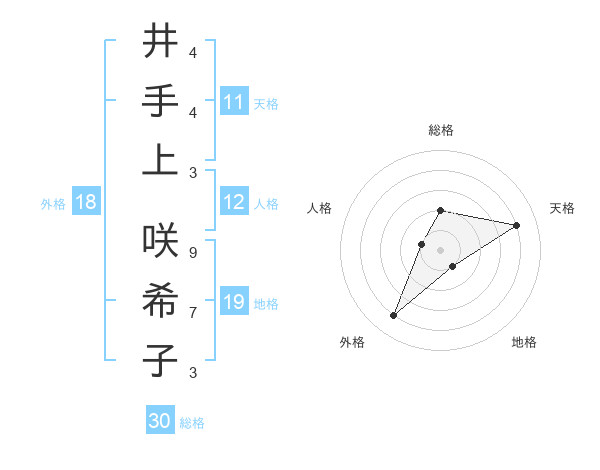井手上 咲希子さんの総格は30画の2点!