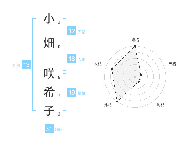 小畑 咲希子さんの外格は13画の5点!