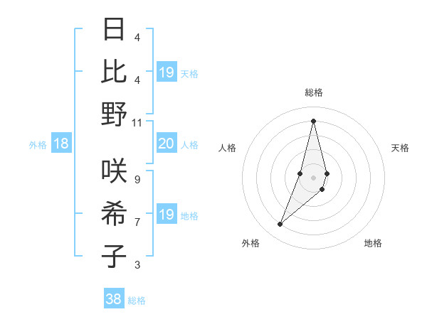 日比野 咲希子さんを姓名の画数から五運を鑑定