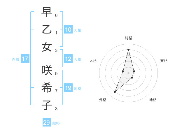 早乙女 咲希子さんの総格は29画の4点!
