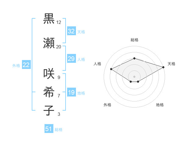 黒瀬 咲希子さんの総格は51画の3点!