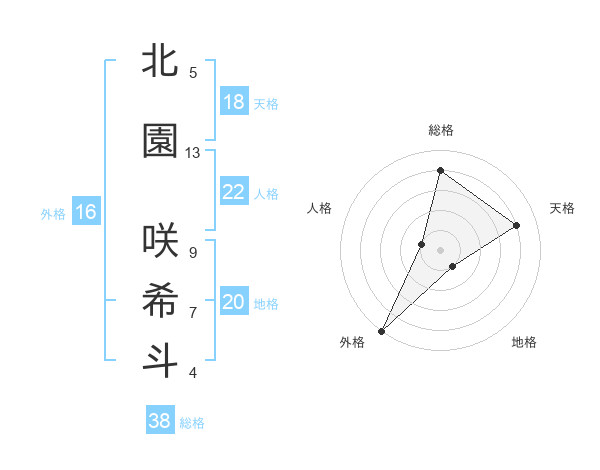 北園 咲希斗さんを姓名の画数から五運を鑑定