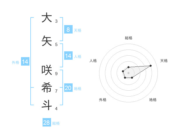 大矢 咲希斗さんを姓名の画数から五運を鑑定