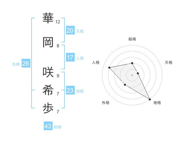 華岡 咲希歩さんの総格は43画の2点!