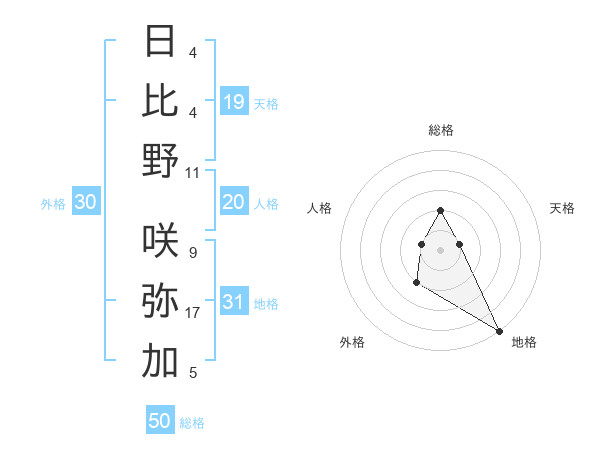 日比野 咲弥加さんを姓名の画数から五運を鑑定