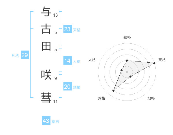 与古田 咲彗さんを姓名の画数から五運を鑑定
