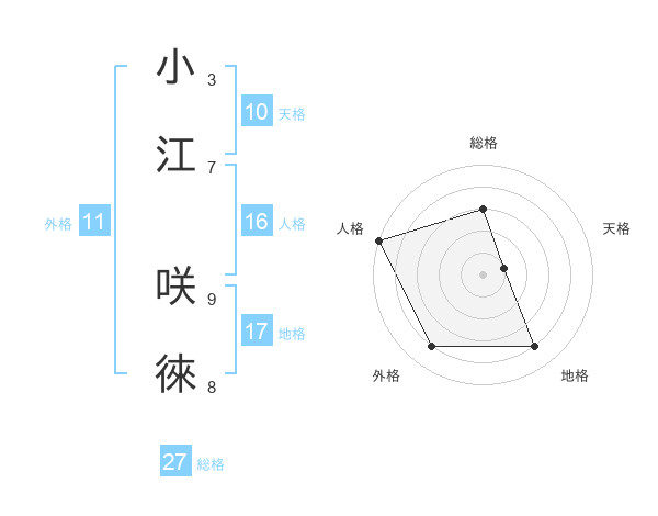 小江 咲徠さんの総格は27画の3点!