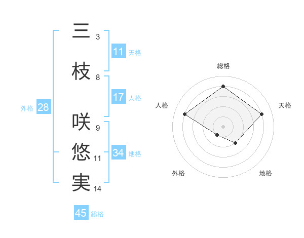 三枝 咲悠実さんの総格は45画の4点!