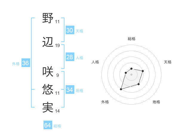 野辺 咲悠実さんを姓名の画数から五運を鑑定