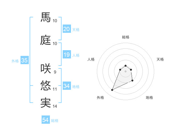 馬庭 咲悠実さんを姓名の画数から五運を鑑定