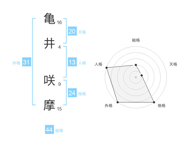 亀井 咲摩さんの外格は31画の5点!