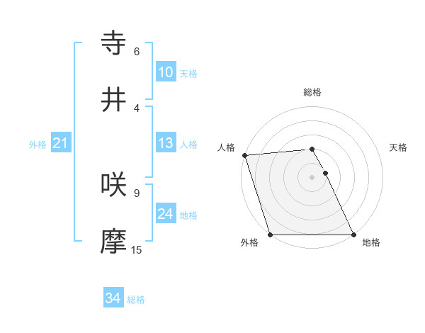 寺井 咲摩さんの総格は34画の2点!