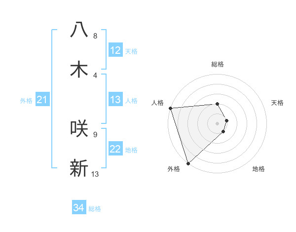 八木 咲新さんの総格は34画の2点!