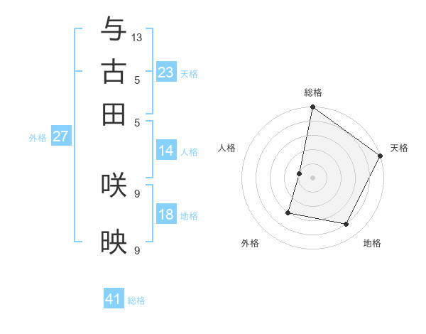 与古田 咲映さんを姓名の画数から五運を鑑定