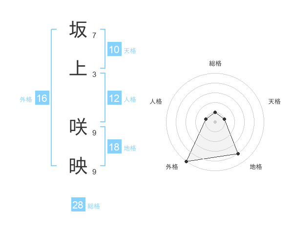 坂上 咲映さんを姓名の画数から五運を鑑定