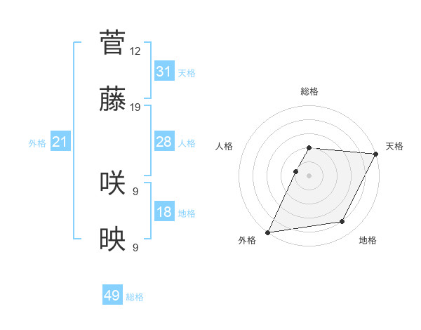 菅藤 咲映さんの天格は31画の5点!
