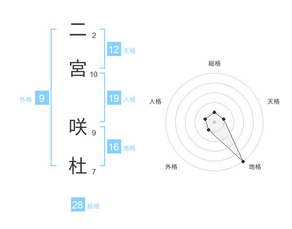 二宮 咲杜さんの総格は28画の1点!