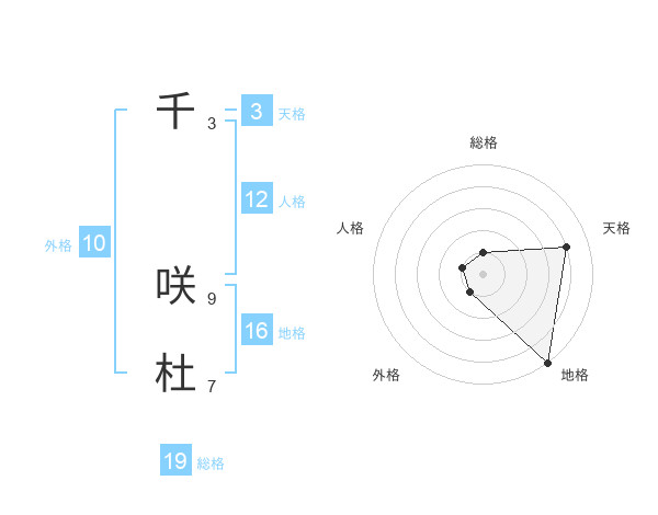 千 咲杜さんの総格は19画の1点!